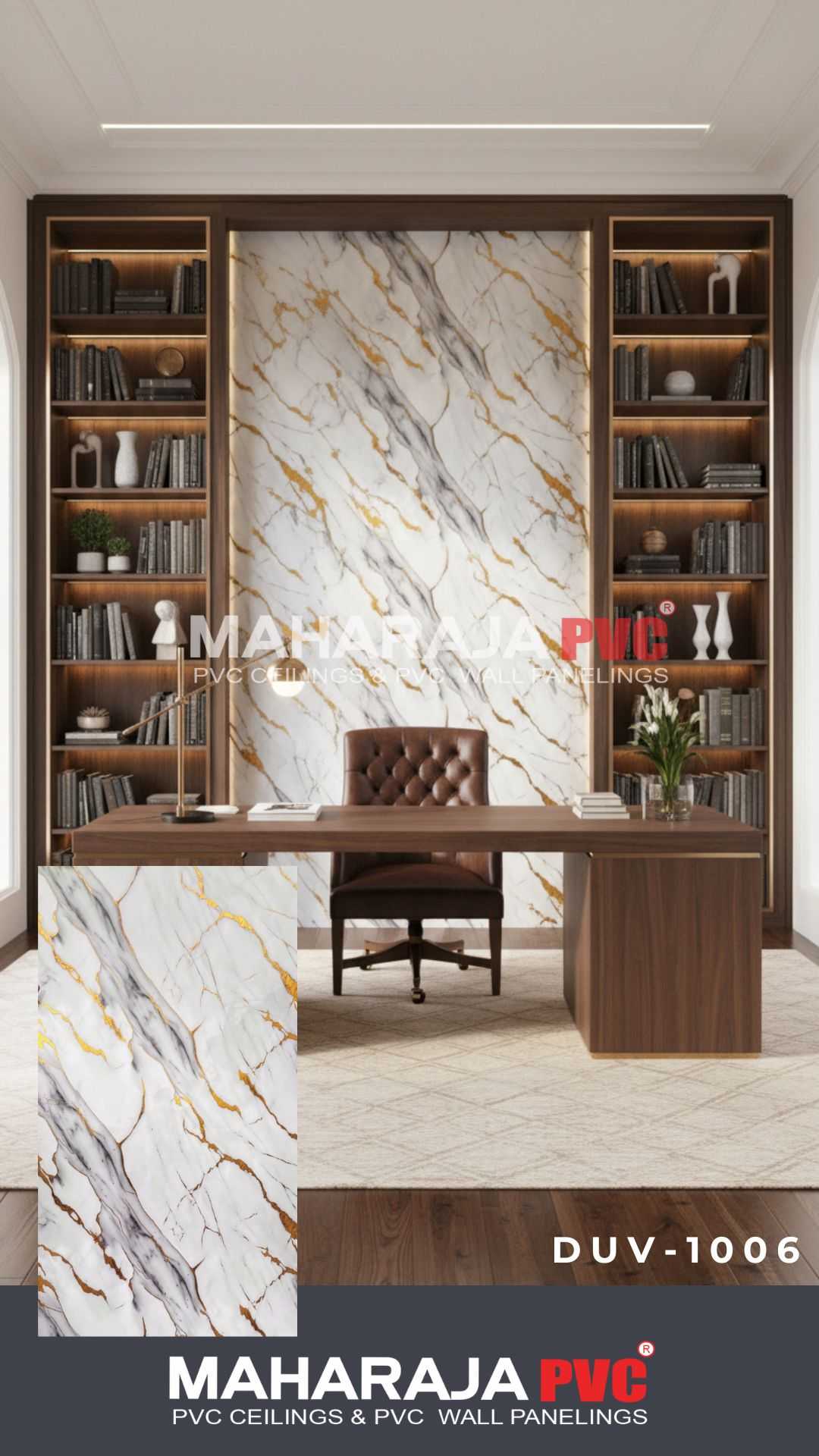 Using high-gloss UV coating, Maharaja UV Sheet Marbles are scratch-resistant, moisture-resistant, termite-proof, and easy to maintain—making them a perfect choice for luxury interiors, wall cladding, furniture panels, and decorative applications.